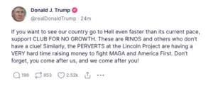 Thanks to you, we’ve stayed rent-free in Trump’s head for *checks calendar* going on three years now. And when he’s lashing out at us, he’s making mistakes. Showing the world the crazy. That’s how he loses. And how we win.