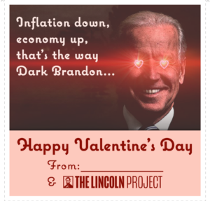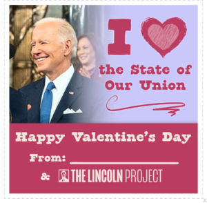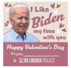 This Valentine’s Day we’ve got cards for whoever that certain somebody is in your life. We hope you’ve found your President Biden and you’re not stuck with a George Santos. Scroll down to see our complete set of 2023 Valentine’s day cards.